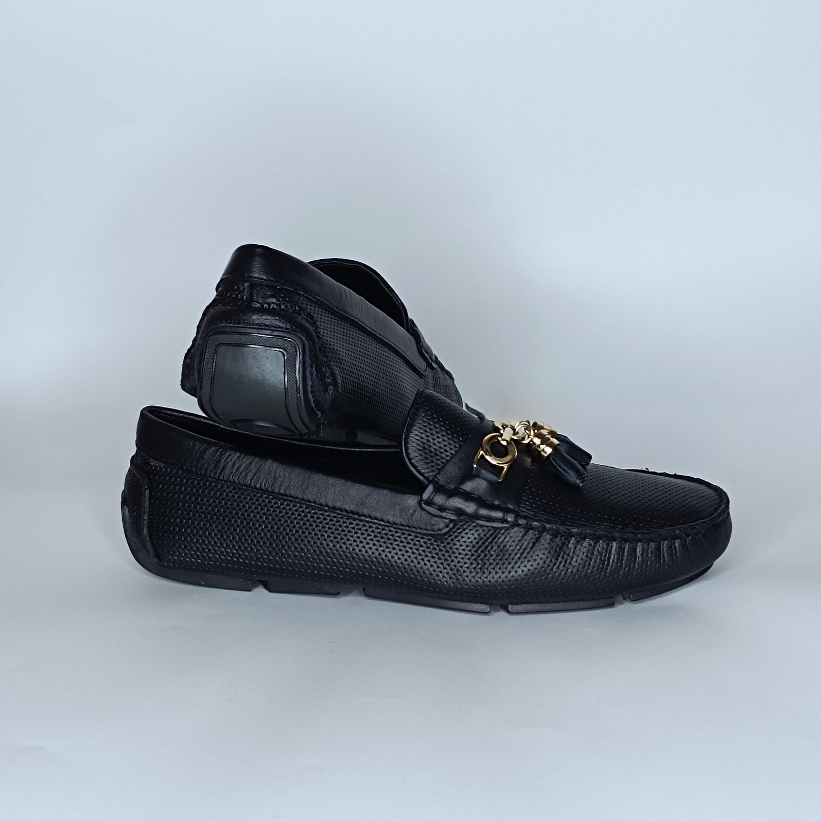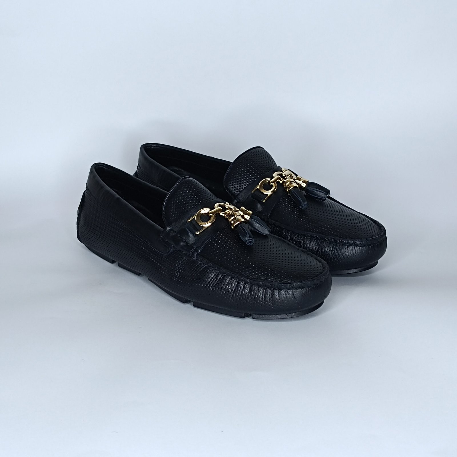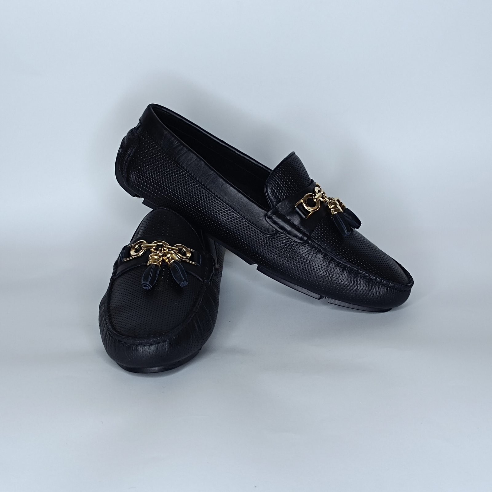حذاء رجالي الجلد أسود وذهبي– موديل