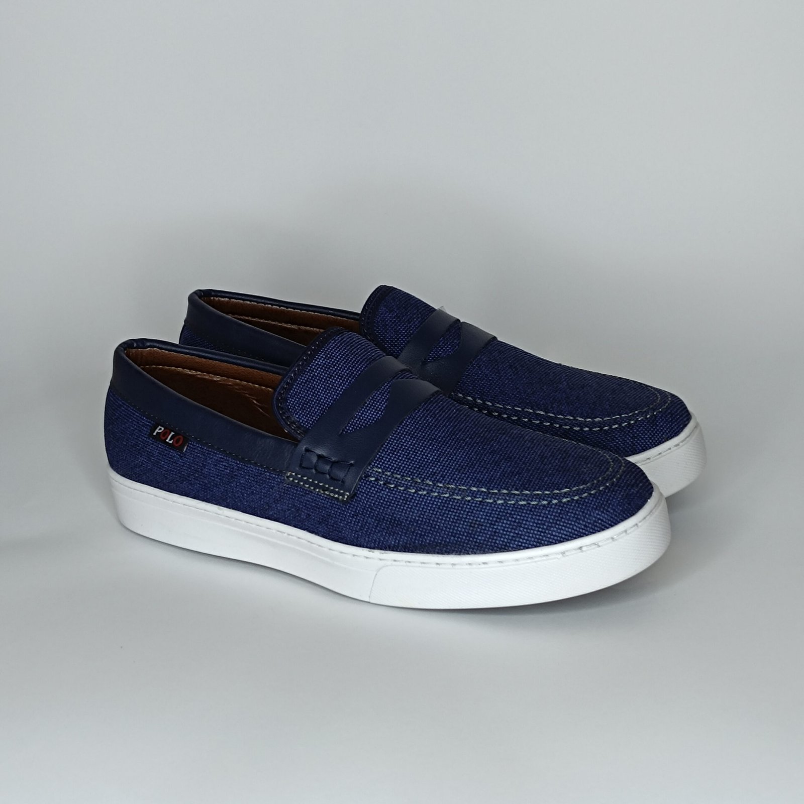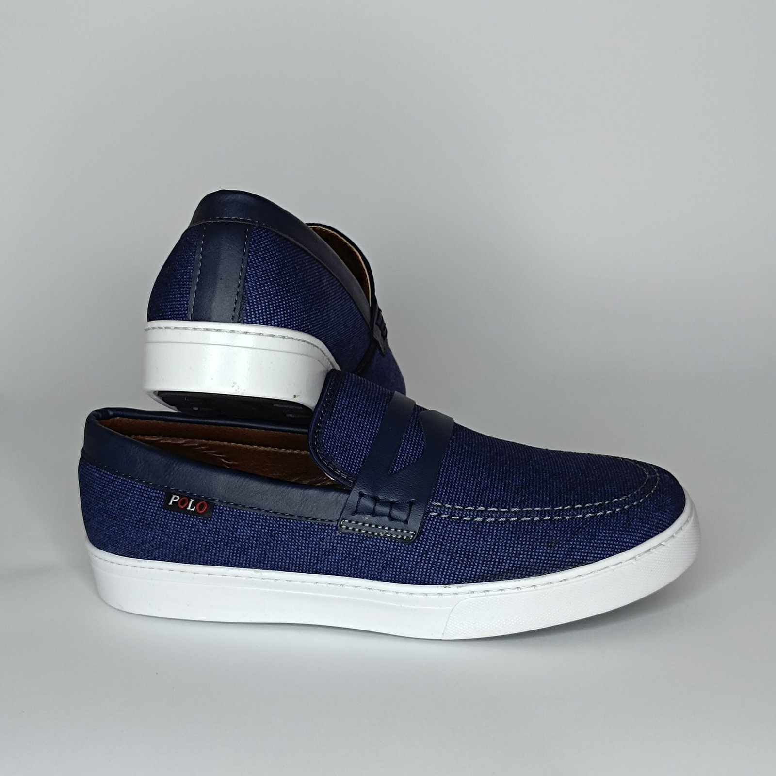 Be the first to review “حذاء رجالي الجين وجلد أزرق غامق وأبيض – موديل 153”