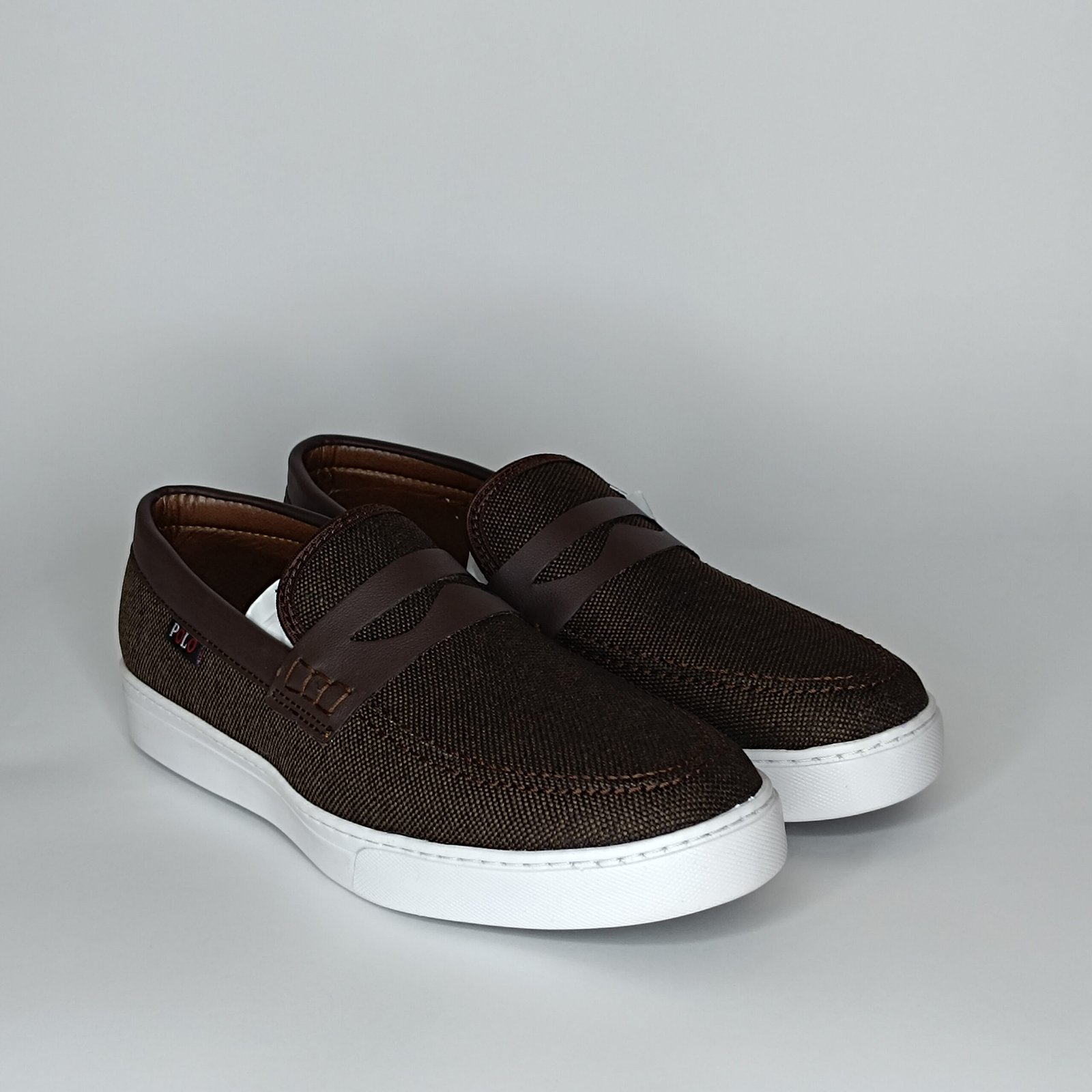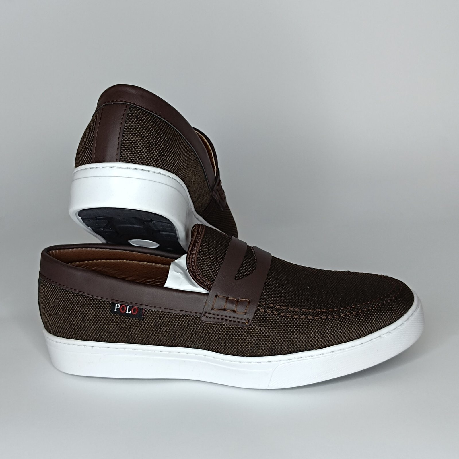 Be the first to review “حذاء رجالي الجين وجلد بني غامق وأبيض – موديل 154”